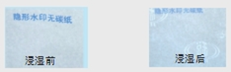 产品隐形水印正常使用条件不可见,在少量湿水后即可显现,纸干后水印消失。