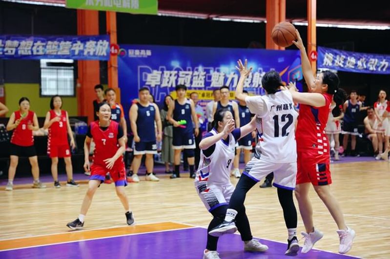 湛江联队犀利上篮,全队默契配合,抢断、妙传、突破、跳投,现场气氛激烈,两队你来我往,比分逐渐拉开。